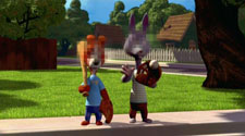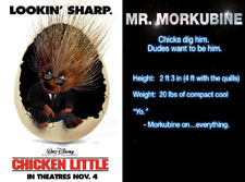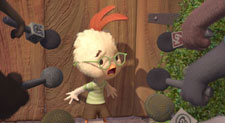 The sky really IS falling in Walt Disney Pictures' new computer-animated film “Chicken Little.” This epic tale presents a new twist to the classic fable of a young chicken who causes widespread panic when he mistakes a falling acorn for a piece of the sky. In this hilarious adventure, Chicken Little is determined to revive his ruined reputation. But just as things are starting to go his way, a real piece of the sky lands on his head! Suspense, chaos, and plenty of laughs ensue as Chicken Little and his band of misfit friends, Abby Mallard (a.k.a. Ugly Duckling), Runt of the Litter and Fish Out of Water, attempt to save the world without sending the town into a whole new panic. This time, when it comes to saving the world, it helps to be a little chicken.