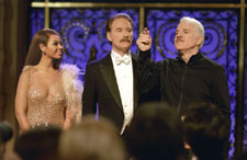 Recreating a role defined by a comedy genius is dangerous business that rarely pays off. Steve Martin is not Peter Sellers and his interpretation of the bumbling Inspector Clouseau will undoubtedly draw criticism for failing to achieve the mark. That said, the latest adaptation of The Pink Panther has its laughs and is by no means a disaster. It is purely slapstick comedy with a few sight gags that borderline cleverness. I had a few good chuckles and the surrounding audience did as well. The issue is that a lackluster script and poor direction do not make up for the comedy that works. The plot begins with a famous English soccer coach (Jason Statham) murdered on the field after a glorious victory. The crime happens in plain view of the spectators, but nothing is seen. His defining piece of jewelry, the gargantuan Pink Panther diamond, is also stolen during the attack. The French Chief Inspector (Kevin Kline) knows that solving such a public crime will lead him to fame and glory. He decides to put the case in the hands of a patsy to distract the press and French citizenry from the real investigation. In comes the accident prone Inspector Clouseau (Steve Martin) to lead the bloodhounds away from the trail. The Chief assigns Clouseau one of his trusted aides, Ponton (Jean Reno), to monitor his progress and report every step. The physical comedy in The Pink Panther is subjective to taste. As an audience member, you either find that humor funny or you don't. If pratfalls come off as ludicrous, sitting through The Pink Panther will be an incredibly tedious experience. Because that is really the only thing done well in the film. Steve Martin does a decent job fumbling around from scene to scene, but it does pale in comparison to the sheer physical genius of the Peter Sellers performance. Shawn Levy, the director, does a terrible job integrating the slapstick comedy into a coherent plot structure. We see a lot of gags intercut by a few tidbits of plot development. Then the finale comes out of nowhere with little or nothing to back-up it up. This can be blamed on a poor script, but the previous Pink Panther versions did not have intricate stories. They were successful because the overall product had a breezy feel that was very entertaining. This movie is laborious and clunky. I am a huge fan of Steve Martin and did like him as Clouseau. The film didn't live up to expectations, but his likeability did. I can't help but feel that a stronger script would have shored up his performance. It's as if the whole film is thrown into his lap to be entertaining. That philosophy works for a few comedians, but Martin's strength is his ability to find comedy in an interesting situation. Hopefully the film will be successful and warrant a sequel. Then we can see if the faults here are addressed and a much better film can be made. |