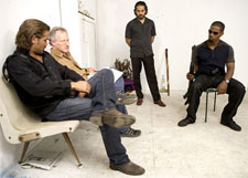 Mann: First of all, it’s all Jamie’s fault because he talked me into this, starting in 2002, at Ali’s birthday party. Jamie Foxx: Yeah, I did. Mann: But, when the proposition became really exciting for myself, and then for all of us, was the idea of really getting into undercover work, and what it does to you, what you do to it, and the whole idea of living a fabricated identity that’s actually just an extension of yourself, and doing it in 2006 -- doing it for real and doing it right now. If you think about it, that then defines a whole bunch of stuff. You’re not going to have crocodiles or alligators, and you’re not going to have sailboats. You’re not going to have nostalgia. And, you’re going to do it for real, as a big picture that’s going to be R-rated because you do dangerous work in difficult places where bad things happen, you have relations with women, there’s sexuality and there’s language, and that became an exciting proposition. But, it started with the real function, for the actors, and myself as well, as what is undercover work, for real? What is that stuff? And then, all these folks went and did a lot of that work themselves. Foxx: I was in it because it’s hot. The hotness of this idea. When I talked to Michael Mann, and just learned about who Michael Mann was, I made a couple rookie mistakes, saying, “Why don’t you do ‘Miami Vice’? You did it as a television show. And, we do Jay-Z, and we do this and we do that.” And, he was like, “Get out of here!” But, after enough of me going up to him and saying, “Look, I really think that this is a great opportunity for you to take a commercial hit, a franchise, and bring the real film capability that Michael Mann has together.” So, now, we’re all protected, in the sense of, we’re doing a big-time summer movie, but it’s still held together by the Michael Mann way of thinking. So, that’s why I wanted to do it. Colin Farrell: Here, here. No. As the two boys have
