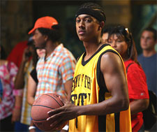 When ever we see a sports film, whether it be basketball, baseball, or football, to name a few, we, the audience, expect to see some real life high flying display of action. At the same time we expect the story to have some substance and have some sense of realism as we have seen in the past film such as “Remember the Titans”, “Friday Night Lights”, “Miracle”, and more recently “Glory Road”. We also expect the acting and writing to be on par with the action so that it doesn’t seem pretentious. With “Crossover”, you have mistakes made all-around from the action to the writing to the acting. Tech (Mackie) is one of the best players in the neighborhood. In a paid basketball game sponsored by a bookie, Tech needs the help of the childhood friend Cruise (Jonathan) to beat their longtime rivals. Because of his greed to win the game and be “The Man”, Tech loses his team focus and it costs him the game, yet he still gets paid for second place. Cruise doesn’t want the money because it may jeopardize his scholarship that he just received from UCLA. His ambition is to go to med school. That ambition takes a back seat once a couple of girls he and Tech meet at a party. Eboni and Vanessa (Pigford) work at a nail salon and Vanessa sets her sights on Cruise and he’s quickly smitten to the point where he takes her to LA for a college visit instead of Tech. That leaves Tech to hustle the game with Up (Little JJ) to win some money so he can fly out there on his own dime. When Vaughn (Brady), the bookie and former sports agent, offers to guide Cruise to the NBA with his help and Cruise refuses, he threatens to tell on his accepting money for play, which could kill his UCLA hopes. Meanwhile, Tech has attitude issue he needs to overcome to continue working make a life for himself. There isn’t much to say regarding this film besides that it’s
