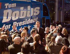 in Biteless Political Satire Then, at the height of a presidential campaign, he impulsively enters the race after a fan suggests that he throw his hat into the ring. This decision confounds his staff, including his chain-smoking producer (Christopher Walken) and his head joke writer (Lewis Black), both of whom initially assume it to be just a publicity stunt. But they have a hard time discerning Tom’s true intentions when, while out on the stump, he insists on abandoning his trademark brand of irreverent humor in favor of earnestly addressing the issues of concern to the voters. Suddenly taken seriously as a candidate, Dobbs rises in the polls and is even invited to participate in the final presidential debate. And after he easily runs circles around the comparatively-wooden Democratic (David Nichols) and Republican (David Ferry) candidates, it becomes clear that the election is up for grabs. This is the promising point of departure of Man of the Year, a misfiring social satire which comes courtesy of Oscar-winner Barry Levinson (for Rain Man). It’s hard to believe that such a gutless, rudderless mess could have been made by the director of Wag the Dog (1997), a seminal contribution to cinema hailed for suggesting the possibility of election chicanery via a manipulation of the mass media. By contrast, Man of the Year doesn’t have any sophisticated insights to share about the current political landscape, though the picture’s trailers would have you believe otherwise. From the misleading commercials, one might reasonably expect Dobbs to be dishing out the same sort of biting satire as Jon Stewart and Steven Colbert, late night hosts on the leading edge of the genre of comedy. The film’s fatal flaw rests with Levinson’s reluctant to reign-in Robin Williams, instead allowing the scatter-mouthed star to run roughshod over the script by combining his stale stand-up act with some infuriatingly inane streams-of-consciousness. So, rather than though-provoking bon mots about the prevailing issues of the day, we’re treated to arguably offensive improv about nuns in thongs, Jewish Buddhists who sit and wait for things to go on sale, and the bachelor candidate’s salacious plans for an all-lesbian cabinet, if elected. Dating himself, Williams only makes you groan when he resurrects old gags like, “If Mama Cass had shared a sandwich with Karen Carpenter, they’d both be alive today.” Are you kidding me? They’ve both been dead for over 20 years. How ancient a demographic could Levinson be shooting for? Such obscure references aside, Man of the Year also pretends to be a potboiler raising questions about the reliability of electronic voting machines. The exploration of this theme features Laura Linney as Eleanor, the lowly computer nerd-turned- whistleblower who reports the bug in the program to her company’s bigwigs. But after they opt to cover it up, she becomes romantically-involved with a doting Dobbs in perhaps the most preposterous plot twist of the year. Trust me, a sloppily-edited, unmanageable insult to the intelligence