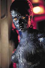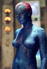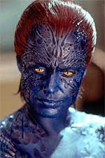 role as Mystique in X-Men 2. GP: How irritating is putting on the blue makeup to become Mystique? RS: Pretty bad. I don’t want to be a big whiner because it’s such a great thing to be a part of {X-Men 2} but it’s pretty grueling. It’s not only the time {9 hours for the first X-Men. 6 hours for the second X-Men} but the maintenance. It’s not easy having 5 women constantly in your personal space. You have tremendous mood swings. You go from being perfectly happy and having a nice time to being evil bitch woman. Having Alan {Alan Cumming who plays Nightcrawler} there on this one was definitely great. We were like an old bitchy blue married couple. No one else understood.