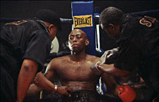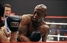 TG: Did you pattern yourself after any particular fighters? OE: Definitely. Of course, Luther Shaw is a composite character, but I definitely took bits and pieces of a lot of fighters that I liked. I ìthoughtî I was incorporating them into the character, but I don't know if I have the ability to really do the Sugar Ray things, but yeah, we took bits and pieces of different boxers and tried to make this character come to life. TG: Do you like boxing movies? OE: I like boxing movies. One of the hardest things for me to watch as far as boxing films [is concerned], is the boxing. You know, you see wonderful stories, but the actual boxing usually sucks. Most of the time you don't care about that because you're so into the story; but we wanted to set a new standard with that as well.