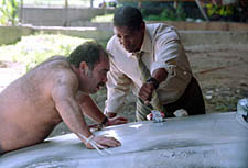 Man on Fire is a film that will own you utterly as you watch it. It is a sledgehammer, brutal, much more intense than expected. But it is also intelligent and moving, a feat rarely accomplished by a big-budget Hollywood film. Denzel Washington delivers a revenge film of raw feeling and ferocity. Alonzo Harris, his Oscar winning character in Training Day, is a cuddly kitten when compared to this protagonist, John Creasy. Audiences expect Denzel Washington to dominate the screen. This performance will surpass their expectations in every possible way. He goes to the darkest, most nuanced place of his career and it is more hardcore than this reviewer could have ever imagined. Add to the mix an interesting plot and good supporting performances. Man on Fire is worth every penny from your wallet and minute of your time. Kidnapping and ransom is a way of life in Latin America. Mexico City is in a spate of violence where the children of the wealthy have become targets. Samuel Ramos (Marc Anthony) is a rich industrialist that has fallen on hard times. His lawyer (Mickey Rourke) concocts a scheme where his daughter, Pita (Dakota Fanning), would be kidnapped. Ramos's kidnapping insurance would pay out, she would be returned unharmed, and the money's theirs. They just have to hire a low-rent bodyguard to help the illusion. John Creasy (Denzel Washington) is an alcoholic ex-mercenary visiting an old friend, Rayburn (Christopher Walken). His past transgressions have left him spiraling towards suicide. Where his only solace is whiskey and the words of the bible. Rayburn convinces him to get a job as a bodyguard and try to settle down. Samuel's wife Lisa (Radha Mitchell) chooses him to guard her daughter. He's emotionally wounded and a drinker, but exceptionally qualified for the job. Pita is instantly drawn to him. He reminds her of a sad version of her teddy bear. Pita is intelligent and sensible. Despite all of his misgivings, Creasy becomes fond of her. As her parents come and go about their business, the bond between the two grows. Creasy teaches her to be strong and he is reminded that there are things in life worth loving. Her kidnapping goes horribly wrong. Creasy makes an impressive stand, but is seriously wounded and must recover. His convalescence takes him out of the situation and it has tragic consequences. He is unhinged by the turnout of events. Creasy promises Lisa that he will hunt down and kill everyone that was responsible or profited from Pita's kidnapping. His search takes him into a shadowy world of corruption and conspiracy. A local reporter (Rachel Ticotin) and Mexican agent (Giancarlo Giannini) help Creasy on his quest for blood. Rayburn allays their initial fears with an indisputable truth, days of Creasy on the loose is better than years of Mexican justice. Man on Fire works because of the characters and their relationships. The premise has been done many times, but rarely do we see such emotion. The characters are believable. Their motivations, whether good or bad, are realistic and honest. Greed, love, desperation, sadness, hatred, the film is packed with candid depictions of human emotion. The relationship between Creasy and Pita is the anchor of the film. It's not cheesy, stupid, or unnecessarily cute in any way. Pita is a little girl that needs a role model and a motivator. Her life is privileged, but rigid and uncompromising. Creasy, despite his flaws, is a highly disciplined individual. He is someone that gets things done. He teaches Pita how to succeed and she shows him the warmth of human kindness. Creasy has surrounded his heart with armor to help him cope with his past. Pita breaks through it. This is the reason for his wrath. She didn't deserve what happened and he is merciless in his revenge. Tony Scott, the film's director, has had a long and varied career. He's a big budget director responsible for some of the biggest hits of the past twenty years. Top Gun, Beverly Hills Cop 2, Crimson Tide, and True Romance are some of the films in his portfolio. Man on Fire is his most stylized film. It's gritty, shot on different film grains, erratically photographed, and filled with complex visual and aural effects. Some people might get tired of the film's look. It pulses with energy and can be overwhelming at times. I thought it was going to be annoying at first, but really bought into what he was trying to do. Scott wants to breathe a distinctive atmosphere into the Mexico City setting. He paints a colorful word of grit and sensation. It's a lot to digest, but adds a real flavor to the context of the film. I'll be curious to see how mainstream audiences receive the film's look. Denzel Washington rules this movie. He has never been more deadly or ruthless on film. The man has what every actor dreams about, screen presence. He achieves what Thomas Jane of The Punisher and Uma Thurman of Kill Bill didn't, his character is frightening and deserves to be feared. Denzel needs to go in a radically different direction after this role. He'll need to soften up his image and do something a bit light-hearted. He's made a career of being powerful and it'll be hard to top this. I hope his next film, the Jonathan Demme remake of The Manchurian Candidate, is subtler. Man on Fire does have its illogical moments and contrivances. They are small enough to be ignored completely. It's too solid a film to be nit-picked. There are no sacrifices made for time constraints. The movie runs two hours and twenty minutes. It's not a cheap thrill, bang every ten minutes movie. It takes time to expose the plot and does it well. Running crisply, never getting bogged down or stuck with unnecessary filler. This approach allows Tony Scott and his editor the chance to tell the whole story. The movie has a complete feel to it. You don't get the feeling that something was missed or it dragged on for too long. The greatest accomplishment of the film is that it gets better as you watch it. What I felt in the firs