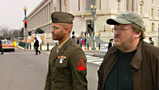 Fahrenheit 9/11 will sweep like a hurricane across America when it is released next week. It is grandly deserving of the controversy it creates. The film is essentially an ideological missive and character assassination of President George W. Bush. Director Michael Moore holds nothing back in excoriating Bush and his handling of the war on terror. This is not unexpected. Michael Moore's anti-Bush agenda is well known. No one walking into Fahrenheit 9/11 has any doubts about the film's purpose. It must be judged like every other film, on its merits, not on philosophical differences. Fahrenheit 9/11 is a brilliant documentary in every possible way. It runs the entire gamut of human emotion. It is funny, harrowing, despicable, grotesque, heartbreaking, shameless, and informative all at once. Moore succeeds in thoroughly grabbing your attention. He doesn't waste time with rhetoric or triviality. The film has a focus and he never deviates from it. It begins comically with a lighthearted look of the 2000 election, the people that were involved, and Bush's pre-9/11 status as president. Then the film takes a radical emotional turn. The screen goes completely black as we hear vividly the sounds of the planes hitting the World Trade Center. Minutes pass as the drama unfolds in audio. This is a stroke of cinematic genius. Those images are forever burned in our minds. They don't have to be seen. Everyone knows exactly what is happening. The picture then returns with the horrified, grief-stricken faces of the people on the street. Moore does not let up with the emotional content. Some situations are funny and others are tragic. It is the reality of the times that Moore wants to depict. We laugh at a mother forced to drink her breast milk by airport security and weep as another mother tells of her son's death in combat. Moore personalizes everything. There is always a face, an individual, attached to every discussed theme. It hammers in just how deeply we are touched by these events. His look at The Patriot Act and its effect on everyday America is quite cleverly done. He avoids all racial stereotypes and shows what happened to a bunch of middle-class whites. People that are obviously not terrorists subjugated by the government for their political beliefs. It's an example of how power misused can target the common man. Moore also infuses a lot of humor in this scenario by having congressmen explain that they never read The Patriot Act. It was printed in the middle of the night and passed with blind fervor the following day. A congressman jokingly quips that they'd never get anything done if they were forced to read every bill. Moore reacts by commandeering an ice cream truck and driving in front of the capitol building reading The Patriot Act over a megaphone. The war itself is looked at from an Iraqi and American point of view. This is the most poignant and shocking part of the film. Many soldiers are interviewed, but their names and ranks are never revealed. They talk about the war from their perspective. It is very interesting because we are not used to hearing soldiers express opinions in the field. Most of them despise being there and blame Bush for putting them into a quagmire. The Iraqis also hate the occupation. There is footage of a night raid on an Iraqi family. It is extremely dehumanizing. Their sense of rage at such treatment is evident. This is a hundred times worse when the escalating violence is factored in and they react to the shrapnel pierced bodies of children killed by explosive devices. Scenes like these are meant to create outrage. Moore could have shown happy images of soldiers building schools and handing out candy. Critics of the film are bound to bring this up. It's not there because it doesn't fit into Moore's view of the war. Once again, this is his belief and the one he chooses to express. George W. Bush is front and center throughout the film. Archival footage is used at key moments to reinforce Moore's perspective of Bush. To say it paints an unflattering picture is a huge understatement. Bush comes off looking like an imbecile. One of Moore's favorite tricks is showing footage of Bush before and after the neat little soundbites are over. It's pretty damning. Moore spends a lot of time focusing on Bush's financial link with Saudi Arabia and Usama Bin Laden's family. This information has been known for some time, so it's not as if any new ground is being broken; but a lot of people are unaware of this and will find it very interesting. The role of big business, a favorite target of Moore's, is also explored. He discusses a little known fact that most people have never heard of. Iraq is obviously valuable because of its vast oil reserves. Why then is Afghanistan so important on the world stage, because it is the easiest route to build an oil and natural gas pipeline to the Caspian Sea. This is the reason why the Russians conquered Afghanistan. Moore has footage with the leaders of the Taliban visiting the big oil companies in Houston. He resolutely targets oil companies and defense contractors for their vested interest in the war on terrorism. The Bush family has many professional and financial affiliations with the said industries. Moore uses that as additional fodder to question Bush's motives in attacking Iraq. The greatest achievement of Fahrenheit 9/11 is not Moore's indictment of Bush, but his portrayal of the class structure in America. He shows footage of the destroyed buildings in Iraq and immediately cuts to the dilapidated homes of Flint, Michigan, his hometown. Military recruiters are seeing scouring the streets looking for poor kids to recruit. They are like duplicitous car salesmen looking for the next deal. They brazenly talk about targeting youths in an impoverished area because they are easier to get. Options are limited and many choose the military as a way to college, never dreaming they'd be fighting a war. Moore embraces this theme off elitism. Poor c