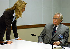 WAS IT DIFFICULT TO PLAY SO COOL, CALM COLLECTED IN THIS FILM? ALLEN: It was a tricky character and it was more difficult than I thought that it'd be. The material, this kind of material and Brian Cox talks about it because he had been in the first one and it was helpful for me because he said, 'There's no fat on this material. There's nothing. You can't kind of fudge it.' With something that's more emotionally based, you can't sort of screw the line up a little bit and adlib and something. This is all just like really focused and driven material and it's technical and specific and you're giving orders and all of this stuff and I'd never really done that before. So it was an interesting challenge. It was a challenge. It was more challenging than I thought it'd be. I thought, 'You don't want to put me on "CSI." I won't do well. You don't want me doing that.' [Laughs] HOW DID YOU OVERCOME THE TECHNICAL STUFF? ALLEN: I would drill as much as I possibly could and had a wonderful director, Paul Greengrass, who would say, 'Just get this part of it right. It's going to be really fast paced anyway. I'm cutting it very, very quickly.' And we got lines sometimes like, 'It's lunchtime. Here are your lines for after lunch.' They tried to stop doing that after a while when they realized it wasn't working so well at least for me. So anyway, the director was really helpful. HOW DO YOU CHOSE WHAT YOU WANT TO DO, AND DID YOU RESIST MAKING PAMELA SOME SORT OF GORGON? ALLEN: Yeah. 'The Notebook' fit in nicely with my life. It