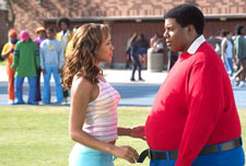 people already have an idea in their minds, so what kind of bal Kenan: I mean really, the balance really came from Cosby's supporting me and letting me just, you know, allowing me to make the decision as an actor or whatever, just show the humanity of the character and you know, we had to make sure all of that came across in the picture. I wasn't really doing too much different from the audition tape it is just, you know, a more thought out version of what I wanted to do to be on the right track. They wanted the compassion and the humanity of the character to come across. . Did you have to wear a fat suit and how uncomfortable was it because you were dancing in one scene? You were doing all kinds of things in that fat suit. Kenan: That suit was pretty comfortable. They like customed fitted it to my body so it was like, you know, I had, it was all insulated, my knees and my elbows, so it impaired my mobility. It was just hot, you know, we were shooting in the desert. How heavy was it? Kenan: About thirty pounds How han Kenan: He came like the first day and we were very excited to see him and all of the characters come to life. And he and his wife, Camille, they were just very excited from day one. They told us that everyone was awesome and that we were involved in making their dream come true, that this was thirty years in the making and whatnot. I guess she knows some of the people that were in the original. It hit home really heavy for me. He was very supportive throughout the process. He came back for a cameo and that was a really nice day. Very powerful man. Rather than leave very early in the morning and rather than just shoot the scene, he did stay and he was there to the very last day when he did not have to be there, so, he told us we did a good job and patted me on the back. I saw him at the Apollo recently when we had the little screening in New York and he made me introduce him. I had never been to the Apollo before and now I'm backstage watching Bill Cosby for two hours which was cool with me. He was wearing a Fat Albert tee shirt with my face on it and it just culminated. I was just wondering if he was losing his mind- he's wearing my face. What in particular did you like about the person or character? Kenan: Just the idea of the atypical hero guy he was, Fat Albert. Jjust the fact that he wanted to solve problems and he was so gentle and everybody went up to him. I also love Mushmouth. Mushmouth was great. And the rest of the gang. It was so funny they would talk about and sing songs about stay in school, don't drink and drive, kids growing up in the 80's. Will there be a sequel? Kenan: I don't know. Ask Joel (Zwick). I don't know. We