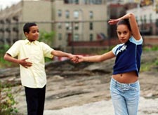 At a time when many superficial films are coming out this summer to capture your attention, there's one film that will capture your heart, and that "Mad Hot Ballroom". It's an upbeat tale of young students finding something worth pursing instead of thinking about the environment they live in, which isn't pleasant for some. Directed by Marilyn Agrelo and co-produced by Amy Sewell, the film dwells into the stories of some of the students who participate in the film. This is not a film about depression. It's a film about adolescence against the backdrop of ballroom dancing. It's a heartwarming film, where there are no losers but winners across the board. Definitely a sensational film for the entire family. Set in New York, the documentary focuses on three schools from different areas and different backgrounds. Most of the kids are about 11-12 years old and at a point when puberty starts to come into their lives, but they seem to be focusing on other things. In Tribeca, there are the kids from P.S 150. Most of the kids are from broken homes or divorces, yet have aspirations that are as high as the stars in the sky. P.S 112 is in Bensonhurst, where half of the students are Asians in an area populated by Italians. And finally, there are the kids from P.S 115, which is located in Washington Heights and is filled with Latinos from the Domican Republic. A few years ago, public elementary schools were required to teach ballroom dancing to students and at the end of the course, there would be a contest to see which school can be the best at ballroom dancing. The styles taught were the tango, the foxtrot, the rumba, swing, and the merengue. The film also shows the dedication and caring provided by the teachers, Victoria Malvagno (Bensonhurst), Allison Sheniak and Alex Tchassov (Tribeca) and Yomaira Reynoso and Rodney Lopez (Washington Heights). In the same way that other documentaries such as "Spellbound" and "Hoop Dreams", ŒMad Hot Ballroom chronicles the trials and tribulations that the students go through in preparation for the competition. For some, it's about clicking with the partner and making sure that dance routine goes right. For others, it's about dealing with home issues and not taking it to school. At the same time that we see these kids dance, we see them grow and learn discipline. One girl goes from being unruly to being a leader and learning to co-operate with authority. The beauty in watching this film is that everyone is upbeat from the start. From the director to the teachers to finally the students, everyone seems to have a reason to be the best. For the students who made the finals the year before, they want to return again, and we see the determination in learning the steps over and over again. For others, it's about the joy of making their parents proud of what they've accomplished, whether it's winning or losing. If you haven't read in the papers, then watching the competition is suspenseful, and credit Cinematographer Claudia Rasche-Robinson for capturing the competition at the World Financial Center. Mad Hot Ballroom will involve you from start to finish and leave you appreciating the school system a bit more. |