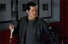 John Leguizamo: Everybody saw it last night- everybody? Don't lie. What did you think, because I really loved it, because I thought it was really- I was hoping it was George's masterpiece because I haven't seen it. I only saw the first fourteen minutes at Cannes, and, I me The proletariat. JL: Yeah, that's what I thought, is that they, yeah, no, it was definitely the proletariat, and then what was curious is what did me and Simon represent, that's what I couldn't totally politically figure out. I mean, we're not the bourgeois, we're either- anybody? I know it's early but it's not that early, come on. Hmm, prophets, John Kerrys- You use a lot of spanish profanity. Was that all ad-libbed? JL: Yeah. There's a lot of ad-libbing. I mean, I didn't know what to expect working with george. I mean, I admired him of course- Night of the Living Dead is one of the great movies of all time, outside that it's a horror movie and it started the whole zombie genre, but it's still a great movie and I used to watch it in New York. I saw Chiller Theater, we used to have that in New York, and Creature Feature- I was it there, and I didn't know George was going to be, how he was going to be with real actors. I know he's got the horror thing down and he's got certain rules he has to have how a zombie's got to move slow, because they have rigor mortis- how can they move fast? He doesn't tell them how to move because he doesn't want them all to [look] like CGI armies, so he lets everybody find their inner zombie, which is pretty cool, and he's good with the acting. You know, he really let us loose, but he would also reign us in, you know, he was really watching the acting. I was really impressed with that, so I was making up shit all over the place. Some of it stuck, some of it will be on the DVD. It will go somewhere. It's never wasted. This film has a classicism that most modern movies don't possess. How did that affect the way you and the crew worked? JL: I've never done a horror movie in my life. This was the first, and it's hard, it's just as hard as doing a comedy. I What do you think playing this character will do for your career? JL: Uh, well you never know what a movie's going to do for you. You know, I let go of those expectations a long time ago. I always improvise, you know, I mean that's my thing. Luckily I'm a writer, so I always try to- the fact that there's great writing, improvising just adds a little bit more to it, just kicks it to anther level, because an actor, believe it or not, really knows his character more than anybody else, more than the original writer, more than the director. At some point, we know that character better than anybody else. Especially if you've connect with it, then there's infinite possibilities that can come out of you, and I think that the better directors know that they have final cut, and the more they let you go the more choices they're going to have in the editing room to create a performance or to change things. I mean, you just give them crazy choices and they can do whatever- the smart directors, the more confident ones who I've experienced know that in the editing room it's all theirs, not a problem. It's the newer cats who I've had experience with, sometimes they're a little too precious about their own words. But I mean I really enjoyed being part of this film. I don't know- maybe some action flicks will come my way out of this, from being the zombie killer. It would be a spin-off. What do you think the movie is trying to say politically? Did you know that Dennis Hopper was a Republican? JL: I learned that he was a Republican on Super Mario Bros., so I learned never to bring politics up because- I really dig the guy, you know- (in Hopper's voice) Dennis Hopper is so cool, man.' He'll always sort of be that hippie cat. Even at his age right now he's still like, man, everything's going great- so cool, man, I love working with you.' We did Super Mario Bros. together and we did this, and this was much more exciting to both of us because the way he was playing the villain was so much more realistic, and the scenes between us, even though we were in this heightened reality, this heightened world, we still were playing everything for real and for keeps. You know, I was in Canada, and Canada, you know, Canadians have their own point of view of America, and they were really rooting for Kerry and hoping that was- they were really disappointed in A Talk a little bit about working with Simon Baker, and improvising opposite him. JL: I trained a lot when I was growing up, you know, I really loved acting, and to me I always felt movies and plays could really illuminate people and help us understand why we do things- it wasn't just purely entertainment. So I've always tried to go deeper with everything I'm doing, and working with Spike Lee and Baz Luhrmann, there's always a big rehearsal period, so because I was coming out of another movie, and George wanted to rehearse, like all great directors have a good instinct for that, that you've got to rehearse. I wasn't able to be there, but me and Simon would get together in our hotel rooms, in our trailers before scenes, we would rehearse the scenes together, talk about it, argue, and it was such a creative atmosphere. I was really full of respect for Simon and had a great time working with him because I knew it was tough in the horror genre to make it real. You have to work a little extra hard to make things look more natural, make them look, let them flow a little bit more. You have to work a little bit harder, and so we did, and then we would- like a show and tell for George and go, well, George, see if you like this,' because a director, it's better to show them than to tell them because usually things don't explain themselves as well as when you see them. What was it like working with KNB effects?
