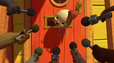 The sky really IS falling in Walt Disney Pictures' new computer-animated film “Chicken Little.” This epic tale presents a new twist to the classic fable of a young chicken who causes widespread panic when he mistakes a falling acorn for a piece of the sky. In this hilarious adventure, Chicken Little is determined to revive his ruined reputation. But just as things are starting to go his way, a real piece of the sky lands on his head! Suspense, chaos, and plenty of laughs ensue as Chicken Little and his band of misfit friends, Abby Mallard (a.k.a. Ugly Duckling), Runt of the Litter and Fish Out of Water, attempt to save the world without sending the town into a whole new panic. This time, when it comes to saving the world, it helps to be a little chicken.