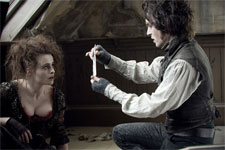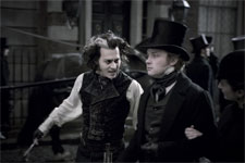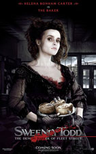 Synopsis: Johnny Depp and Tim Burton join forces again in a big-screen adaptation of Stephen Sondheim's award-winning musical thriller "Sweeney Todd: The Demon Barber of Fleet Street." Depp stars in the title role as a man unjustly sent to prison who vows revenge, not only for that cruel punishment, but for the devastating consequences of what happened to his wife and daughter. When he returns to reopen his barber shop, Sweeney Todd becomes the Demon Barber of Fleet Street who "shaved the heads of gentlemen who never thereafter were heard from again." Joining Depp is Helena Bonham Carter as Mrs. Lovett, Sweeney's amorous accomplice, who creates diabolical meat pies. The cast also includes Alan Rickman, who portrays the evil Judge Turpin, who sends Sweeney to prison and Timothy Spall as the Judge's wicked associate Beadle Bamford and Sacha Baron Cohen is a rival barber, the flamboyant Signor Adolfo Pirelli.