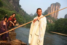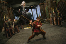 | Synopsis: In "The Forbidden Kingdom," American teenager Jason (Michael Angarano), who is obsessed with Hong Kong cinema and kungfu classics, finds an antique Chinese staff in a pawn shop: the legendary stick weapon of the Chinese sage and warrior, the Monkey King (Jet Li). With the lost relic in hand, Jason unexpectedly finds himself transported back to ancient China. There, he meets the drunken kungfu master, Lu Yan (Jackie Chan); an enigmatic and skillful Silent Monk (Jet Li); and a vengeance-bent kungfu beauty, Golden Sparrow (Crystal Liu Yi Fei), who lead him on his quest to return the staff to its rightful owner, the Monkey King - imprisoned in stone by the evil Jade Warlord (Collin Chou) for five hundred years. Along the way, while attempting to outmaneuver scores of Jade Warriors, Cult Killers and the deadly White Hair Demoness, Ni Chang (Li Bing Bing), Jason learns about honor, loyalty and friendship, and the true meaning of kungfu, and thus frees himself. Trailer: