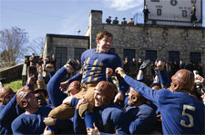 Clooney Courts Zellweger in Screwball Comedy Set in the Roaring Twenties It is the height of the Roaring Twenties, an era generally associated with overindulgence and irrational exuberance in spite of Prohibition and the specter of the Great Depression looming over the horizon. The decade also signaled the introduction of professional football in the American heartland, and this is where we meet Jimmy “Dodge” Connelly (George Clooney), the owner/captain/coach of the Duluth Bulldogs. While most folks fail to see much of a future in a game being played on turnip fields by miners, farmers and shell-shocked veterans, Dodge can already envision the fledgling league’s potential as a popular spectator sport. Plus, the aging star is still a kid at heart, who would rather continue playing indefinitely than make any concessions to Father Time. But with his Bulldogs enjoying more of a reputation for brawling in speakeasies than for greatness on the gridiron, they find themselves without a sponsor and teetering on the brink of bankruptcy. So, in order to save his team from financial collapse, Connelly comes up with an inspired idea to bolster his flagging franchise’s box-office receipts. The plan is to offer a record-setting contract to Carter Rutherford (John Krasinski), provided the Princeton University sensation is willing to abandon plans to attend Yale Law School and turn pro instead. For the 6’3” Golden Boy offers the added bonus of being a celebrated World War I hero who single-handedly captured a platoon of German soldiers during the Battle of the Argonne Forest in Northern France. Carter signs up and, sure enough, the gamble works. Sportswriters covering the Bulldogs begin writing articles recounting the veteran’s exploits and enormous crowds start flocking to the team’s games. However, a fly in the ointment arrives in Lexie Littleton (Renee Zellweger), an up-and-coming investigative journalist looking to make a name for herself. She suspects that the patriot’s war record might have been a bit embellished, so she sets about doing a little digging to elicit the truth. Meanwhile, she simultaneously finds herself being courted by both Carter and Dodge, and a love triangle ensues. Written and directed by George Clooney (for Syriana), Leatherheads is an old-fashioned screwball comedy cut from the mold of a Preston Sturges farce. Half slapstick, half romantic romp, the picture is at its best when indulging in witty repartee between Clooney and Renee Zellweger. Reminiscent of Tracy and Hepburn, the two Academy Award-winners again prove their worth, generating an endearing chemistry while delivering their every line with perfect aplomb. If only the rest of the script measured up to their inspired exchanges, the movie might have added up to something more memorable than a momentary diversion. Instead, what we have is a pleasant period piece harking back to days of yore, but one so superficial that it’s likely to be forgotten by the time you file up the aisle.