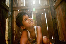 For, all the unfortunate lad has to share is his sorrowful autobiography, an endless tale of woe which he reveals via a kaleidoscope of colorful flashbacks. Surprisingly, it turns out that he’s actually been less concerned with taking home the 20 million rupees than with using his TV publicity as a means of finding his long-lost love, Latika (Freida Pinto), a fellow street urchin and fan of the popular quiz show.