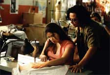 privileged society ignorant of its neighbors in the photography Ana’s journey to social awakening begins the first day of her summer as she begins working in the dressmaking factory her sister owns and is struggling to keep alive. As time goes, Ana’s snobbish self-righteous anger at being forced to work in a “sweatshop factory” diminishes. She begins to realize that her sister is a young entrepreneur trying to keep her business afloat and support the women that work in her factory in face of unforgiving economic times and the surrounding capitalistic business ethic. Ana eventually becomes a part of this family of women factory workers and the dynamics between Ana and the women become an important part of Ana’s woman transition. The film is not only about what Ana learns from this summer of change, but also about what those around her can learn from her new vision of the world. Ferrera and Ontiveros play the relationship between Ana and her mother wonderfully as a tug-of-war goes on between the two for Ana’s body and mind. As much is said by look and inference as is said out loud. Ana struggles to break away while her mother struggles to keep Ana tied to her. This tug-of-war dynamic makes for some very funny moments throughout a film that is a beautifully warm, comedic drama. | ||||||||||||||||||