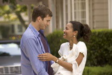 Hollywood is constantly making remakes and adaptations on classic films or foreign films as if a new audience will bring in more money. In some cases, the remakes have done well such as "The Ring", which is based on the Japanese film of the same name, or "The Italian Job", which was a remake on the 60s film. Both of those films were financially successful and for the most part received good reviews. In the latest venture that Hollywood is taking with remakes, they are making a film that not only is considered a classic, but was dangerous and political at the time it came out. "Guess Who" is based on the 1968 film, Guess Who's Coming to Dinner, which starred Sidney Poitier, Spencer Tracy, and the great Katherine Hepburn. At the time that film came out, race was a big factor in the world and the film brought out many discussions and debates about interracial relationships. In this latest remake, the race has been reversed in which Kevin Rodney Sullivan ("Barbershop 2") helms this comedy, in which an African-American father (Bernie Mac) is less than thrilled when his daughter brings home her white fiancé (Ashton Kutcher). Times have definitely changed because Ashton Kutcher is no Sidney Poitier, but Bernie Mac pretty much holds the film and the politics together in this mildly entertaining film. Simon (Kutcher) is all set to tell his fiancé Theresa (Saldana) that he quit his job, when she tells him that they are going to New Jersey to visit her parents. Not only are they in town to tell them the news of their engagement, but they are there to celebrate their parents' 25th wedding anniversary. One of the main issues before getting there is that Theresa never mentioned to her folks that Simon is white. Dad Percy Jones (Mac) believes his daughter is seeing this successful brother who works for a big corporation. When the times comes to meet Simon, he is shocked and dismayed that he has deal with this no sport playing and no job individual. He does all he can to make sure that Simon and Theresa don't do any monkey business in his house, while he checks out if Simon can fit in with a black family. The film works because of Bernie Mac. He brings his persona to this film and it feels genuine. He's tough when he needs to be and he's soft when it comes to matters of the heart. It's tough to categorize Kutcher. He's not a comedian, and he hasn't demonstrated enough dramatic skills to determine his range as an actor. He plays the role with blandness. But in fairness, his scene with Mac on the go cart brought out a few chuckles. Saldana continues to be impressive with each role she takes and with this role she adds some fire to her character. With race not a big factor these days as it was in 1968 and instead of having a scene that may stick out with today's audience and make it feel authentic, Sullivan decided to add more humor in regards to the discussion such as the scene when racial jokes are being displayed. When you think about it, this is nothing more than the black version of "Meet The Parents", but with the race card thrown into the mix. Mac keeps it lively and entertaining. |