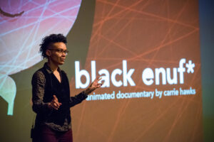 The season ends with an eclectic shorts program (February 18) featuring the animated documentary black enuf* by Carrie Hawks, the story of a “queer oddball” on a quest for acceptance and self-love while exploring expanding ideas of black identity; Swimmin’ Lesson, director Shahari Moore’s poetic and moving tale of one young father’s recollection of his son’s fate during Hurricane Katrina; and Stacey Holman’s Dressed Like Kings, an insightful look at the South African pageant where men compete in formal wear for the title of the best and freshest dresser.